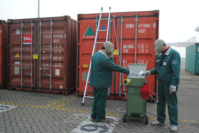 日前,中南地區(qū)第一臺最現(xiàn)代化的“移動式微電腦施藥器”在長沙新港投入使用。近日,湖南省進(jìn)出口檢驗(yàn)檢疫局技術(shù)人員,在長沙新港首次對國際集裝箱采用封閉式消毒、熏蒸。這是我省使用的第一臺消毒熏蒸設(shè)備,結(jié)束商檢開箱施藥消毒熏蒸的歷史。
