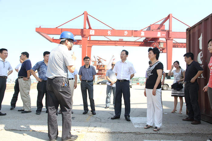 圖為長沙集星集裝箱碼頭有限公司總經(jīng)理助理周勇(前左一)在向長沙市政協(xié)黨組副書記、副主席鐘新蓮(前右一)、長沙市開福區(qū)區(qū)委書記李蔚(前右二)介紹長沙新港目前的集裝箱業(yè)務(wù)情況。 2013年7月11日上午,長沙市政協(xié)黨組副書記、副主席鐘新蓮在長沙市開福區(qū)區(qū)委書記李蔚的陪同下,就現(xiàn)代物流業(yè)發(fā)展情況來長沙新港視察調(diào)研。湖南長沙新港有限責(zé)任公司董事、財務(wù)總監(jiān)趙赤書,長沙集星集裝箱碼頭有限公司總經(jīng)理助理周勇出席接待。鐘新蓮副主席對港口建設(shè)及港口目前的發(fā)展情況等一系列問題進行了深入考察。 |