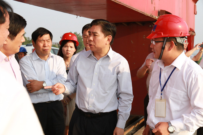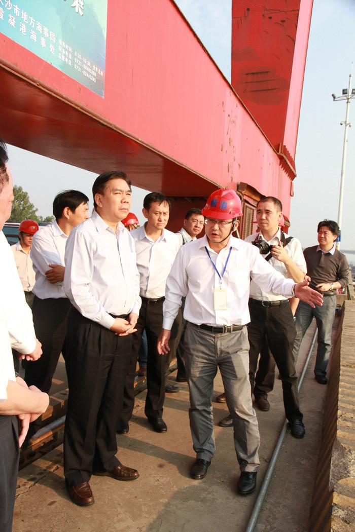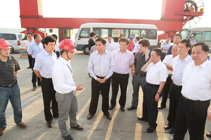 10月14日下午,國家發(fā)改委副主任徐憲平,交通運(yùn)輸部綜合規(guī)劃司副司長蘇杰,國家發(fā)改委基礎(chǔ)產(chǎn)業(yè)司司長黃民,國家發(fā)改委規(guī)劃司副司長袁喜祿等領(lǐng)導(dǎo)一行,在湖南省人民政府副省長陳肇雄,長沙市領(lǐng)導(dǎo)余合泉等領(lǐng)導(dǎo)的陪同下就長江經(jīng)濟(jì)帶建設(shè)來長沙新港調(diào)研。湖南長沙新港有限責(zé)任公司董事長、總經(jīng)理、黨委副書記唐忠良,董事、副總經(jīng)理張韜,董事、長沙集星集裝箱碼頭有限公司副總經(jīng)理辛華等接待。 在長沙新港集裝箱碼頭上,集星公司副總經(jīng)理辛華首先向徐憲平副主任一行介紹了長沙新港一、二期碼頭規(guī)模、貨源、業(yè)務(wù)、運(yùn)營等情況,著重介紹了湘江長沙綜合樞紐試通航初期和長沙海事為長沙新港開辟樞紐“綠色通道”后,碼頭業(yè)務(wù)及生產(chǎn)情況對(duì)比。辛華介紹說:“樞紐‘綠色通道’開辟以來,船舶進(jìn)出閘通過艘次提高26.84%;集裝箱吞吐量達(dá)46412標(biāo)箱,比‘綠色通道’開辟之前提高86.28%。”隨后,新港公司副總經(jīng)理張韜向徐憲平副主任一行介紹了三期工程規(guī)劃、建成規(guī)模、建設(shè)進(jìn)展等情況。 徐憲平副主任指出,湖南這些年發(fā)展迅速,強(qiáng)大的水運(yùn)網(wǎng)絡(luò)給予了湖南對(duì)外經(jīng)濟(jì)發(fā)展強(qiáng)大的支持。長沙新港碼頭地理位置優(yōu)越,硬件設(shè)施完備,足夠滿足碼頭日常生產(chǎn)需求;港口規(guī)劃及管理科學(xué)規(guī)范,集裝箱碼頭管理系統(tǒng)十分先進(jìn);碼頭生產(chǎn)井然有序,一派繁忙景象。徐憲平副主任肯定了長沙新港這幾年建設(shè)、經(jīng)營所取得的成績并強(qiáng)調(diào),三期建成后,港口功能將更加完善,有望成為國內(nèi)一流的現(xiàn)代化內(nèi)河港口,長沙新港前景可觀。 |