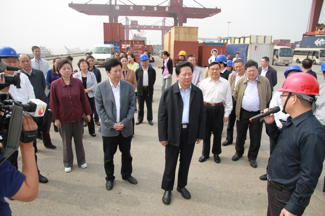 4月17日,省政協(xié)主席陳求發(fā)就臨港臨空產(chǎn)業(yè)發(fā)展情況調(diào)研長沙新港,強調(diào)大力發(fā)展臨港臨空產(chǎn)業(yè)是提升城市競爭力的重要組成部分,要充分認(rèn)識臨港臨空產(chǎn)業(yè)對內(nèi)陸城市發(fā)展的重要意義,深入調(diào)研,狠下功夫,匯集各方面的智慧和力量,以優(yōu)質(zhì)調(diào)研成果促進(jìn)我省臨港臨空產(chǎn)業(yè)發(fā)展。 省政協(xié)副主席武吉海、秘書長袁新華參加調(diào)研,長沙市市長胡衡華、市政協(xié)主席范小新、副市長何寄華、政協(xié)副主席、交通運輸局局長劉明理及開福區(qū)區(qū)委書記李蔚、區(qū)長廖建華等領(lǐng)導(dǎo)陪同考察,新港公司董事長唐忠良,董事張韜、辛華參加接待。