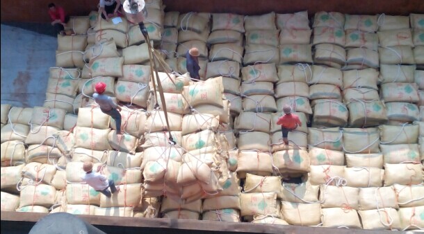 2014年10月15日,一艘名為“皖江貨8888號(hào)”貨船裝載豆粕運(yùn)抵長(zhǎng)沙新港件雜貨物碼頭。該船貨物是中海糧油湖北武漢新煉油生產(chǎn)廠家針對(duì)現(xiàn)在勞動(dòng)力緊張, 節(jié)省人力成本而特意改進(jìn)裝卸工藝的技術(shù)革新項(xiàng)目,即出廠時(shí),就將所有單包裝豆粕全部裝在網(wǎng)絡(luò)里,然后再裝船發(fā)運(yùn),到目的港口卸載時(shí), 只需將網(wǎng)絡(luò)集合放入吊鉤便可起吊。 以前,來(lái)自長(zhǎng)江下游在江陰、南通、張家港等裝運(yùn)豆粕的船舶運(yùn)進(jìn)長(zhǎng)沙新港,都是按50—70公斤重一袋的單包裝運(yùn)輸?shù)指。裝卸時(shí),裝卸工人要從數(shù)米深的船艙里, 靠雙人一組用人力將單包裝豆粕搬抬包、堆碼到網(wǎng)絡(luò)中,再起吊裝上汽車。每次只能吊2噸,一個(gè)臺(tái)班僅能完成裝卸300噸左右。這種傳統(tǒng)裝卸,勞動(dòng)強(qiáng)度大,效率低,勞動(dòng)力需求量大。 此次,中海糧油開(kāi)始試用的改進(jìn)裝卸工藝,裝卸時(shí),裝卸工只需將4個(gè)網(wǎng)絡(luò)集合,繩環(huán)串掛上 “S”型鉤子,便可輕松完成裝卸。每次能吊3噸,一個(gè)臺(tái)班能完成裝卸600噸左右,臺(tái)班操作量翻2倍以上。網(wǎng)絡(luò)由收貨方回籠,可重復(fù)使用。改進(jìn)裝卸工藝后,既省工,又省時(shí),卸船速度加快,徹底告別了人力搬抬包裝貨物的歷史。 據(jù)廠家負(fù)責(zé)人介紹,該工藝仍在研究改進(jìn)過(guò)程中,以后效率將更大,更有利于節(jié)約物流成本。 |