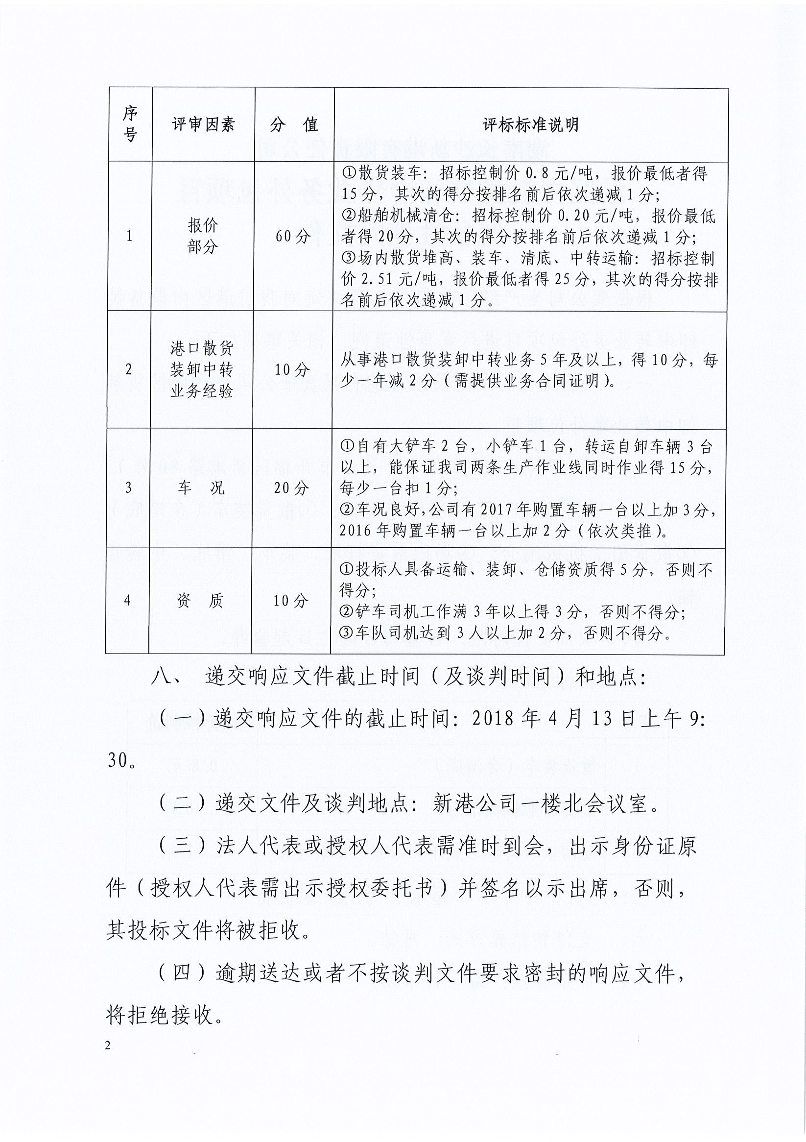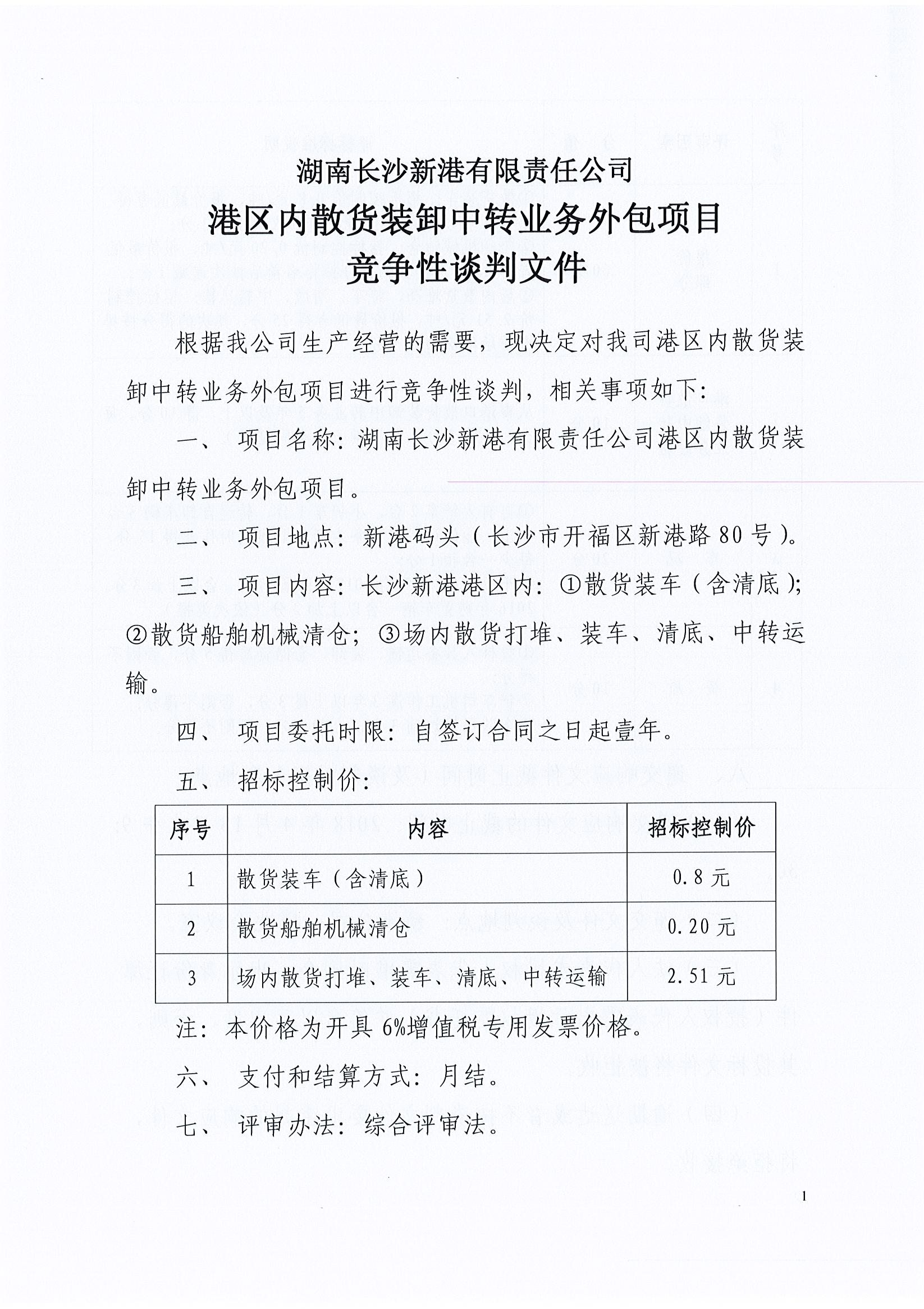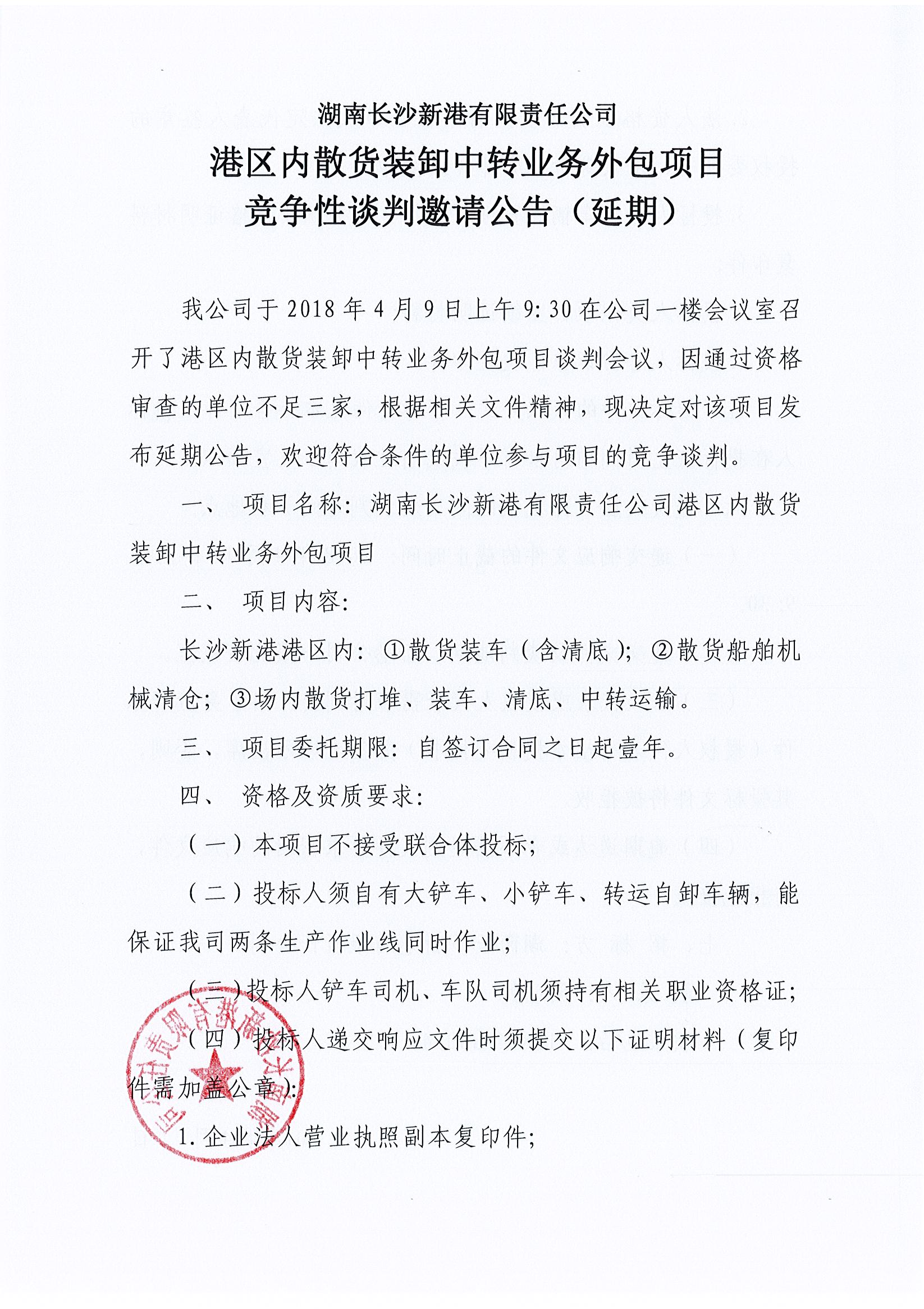 港區(qū)內(nèi)散貨裝卸中轉(zhuǎn)業(yè)務(wù)外包項(xiàng)目競爭性談判邀請公告(延期)