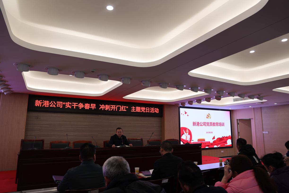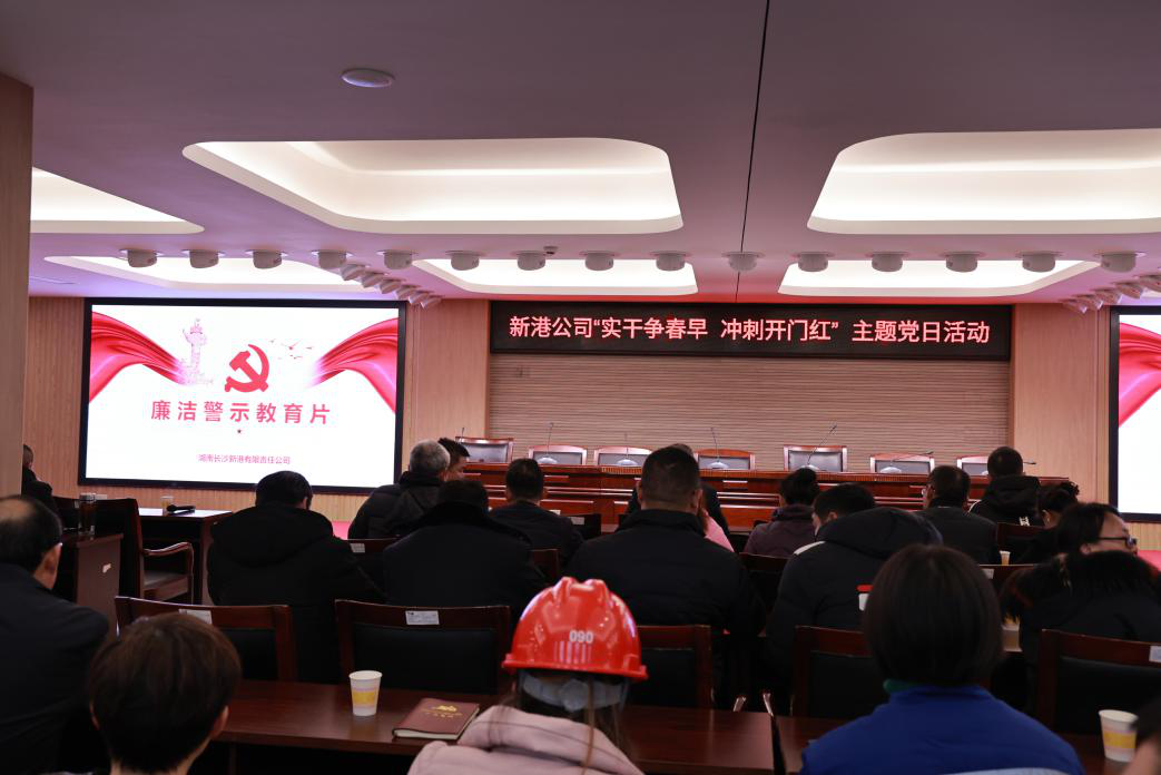 實(shí)干爭(zhēng)春早 沖刺開(kāi)門(mén)紅 中共湖南長(zhǎng)沙新港有限責(zé)任公司委員會(huì)主題黨日活動(dòng) 為扎實(shí)擔(dān)當(dāng)起學(xué)習(xí)宣傳貫徹黨的二十大精神排頭兵的光榮使命,教育引導(dǎo)廣大黨員干部從黨的二十大專(zhuān)題學(xué)習(xí)汲取精神力量,在新的一年里,進(jìn)一步堅(jiān)定理想信念,主動(dòng)肩負(fù)時(shí)代重任,開(kāi)啟新征程。2月17日上午,長(zhǎng)沙交通集團(tuán)新港公司開(kāi)展學(xué)習(xí)貫徹黨的二十大精神“實(shí)干爭(zhēng)春早,沖刺開(kāi)門(mén)紅”主題黨日活動(dòng),此次活動(dòng),以“微影片、微黨課、微實(shí)事、黨員教育培訓(xùn)”等多種形式推動(dòng)黨的二十大精神落地見(jiàn)效。公司黨委副書(shū)記、董事、總經(jīng)理辛華作宣講,班子成員、公司中層管理人員、各支部黨員共76人參加活動(dòng)。 深學(xué)悟初心-【微影片】 全體黨員干部集中觀看2022年度湖南反腐警示片《忠誠(chéng)與背叛》。通過(guò)觀看警示教育片,引導(dǎo)黨員上好廉潔教育“新年第一課”,教育全司廣大黨員干部面對(duì)誘惑要保持清醒的頭腦,自覺(jué)抵制各種腐敗現(xiàn)象的侵蝕,牢固樹(shù)立正確的人生觀、利益觀和權(quán)力觀,干干凈凈做事,老老實(shí)實(shí)做人。  篤行求實(shí)效-【微黨課】 學(xué)理論之思,踐初心之行。新港公司以“實(shí)干爭(zhēng)春早,沖刺開(kāi)門(mén)紅”為主題,從七個(gè)黨支部里的推選黨員干部帶頭講,鼓勵(lì)黨員人人上臺(tái)講【微黨課】,突出“微”這個(gè)形式,聚焦“黨”這個(gè)靈魂,利用“課”這個(gè)載體,教育廣大黨員從不同層面、不同角度深刻領(lǐng)會(huì)黨的理論創(chuàng)新成果,以新思想、新觀念、新思路、新舉措,開(kāi)創(chuàng)公司高質(zhì)量發(fā)展新局面。