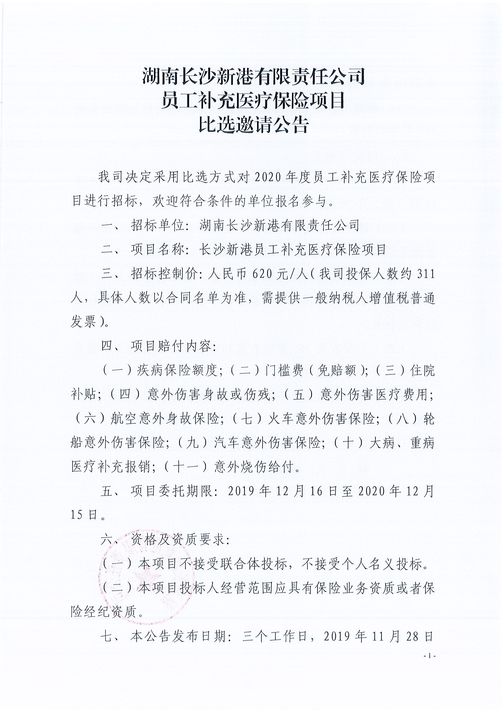 湖南長沙新港有限責(zé)任公司員工補(bǔ)充醫(yī)療保險項目比選邀請公告