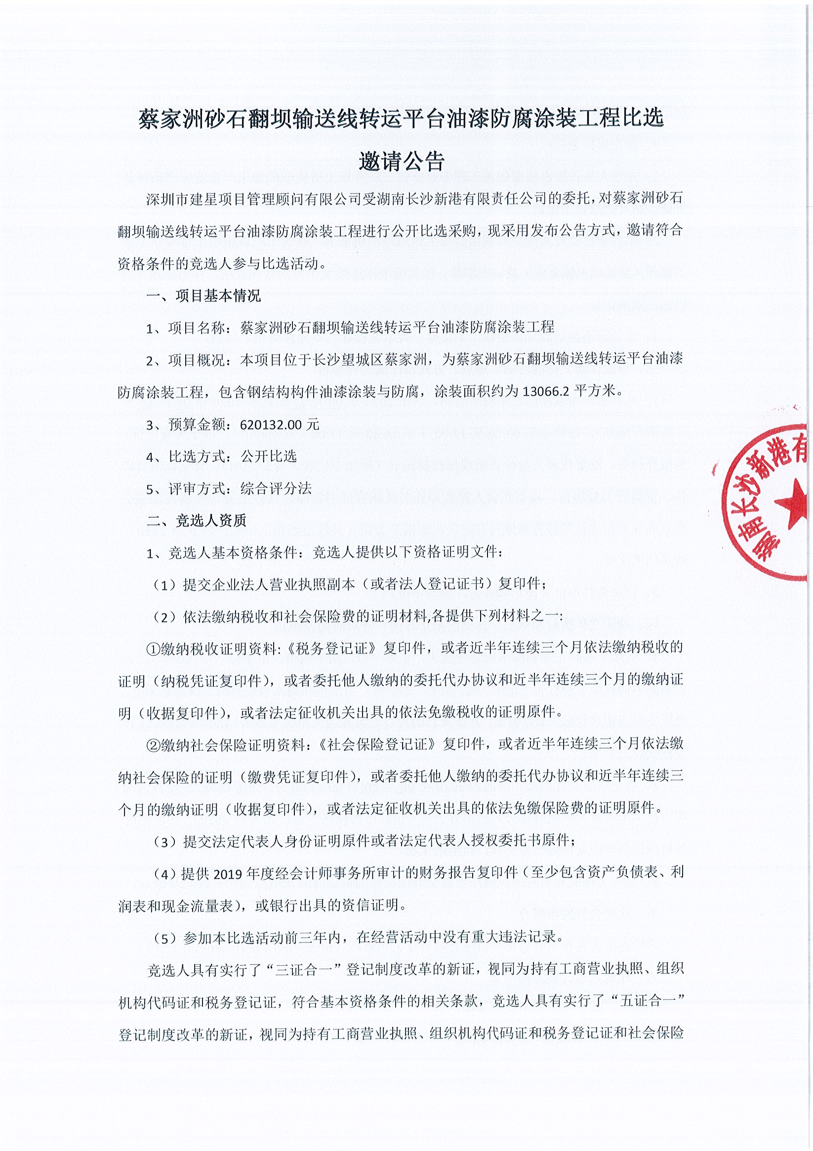 蔡家洲砂石翻壩輸送線轉(zhuǎn)運(yùn)平臺(tái)油漆防腐涂裝工程比選邀請(qǐng)公告
