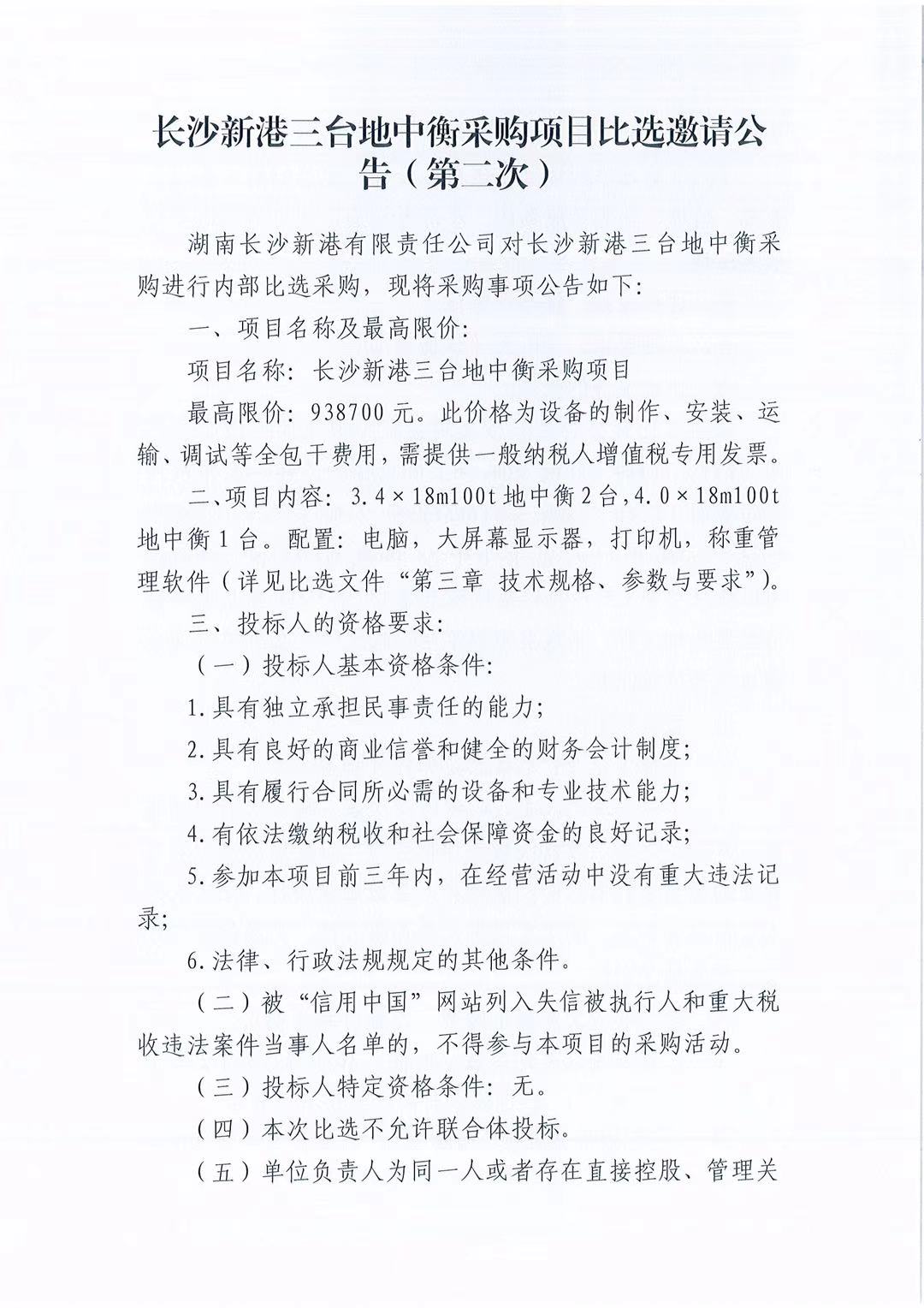長(zhǎng)沙新港三臺(tái)地中衡采購(gòu)項(xiàng)目比選邀請(qǐng)公告(第二次)