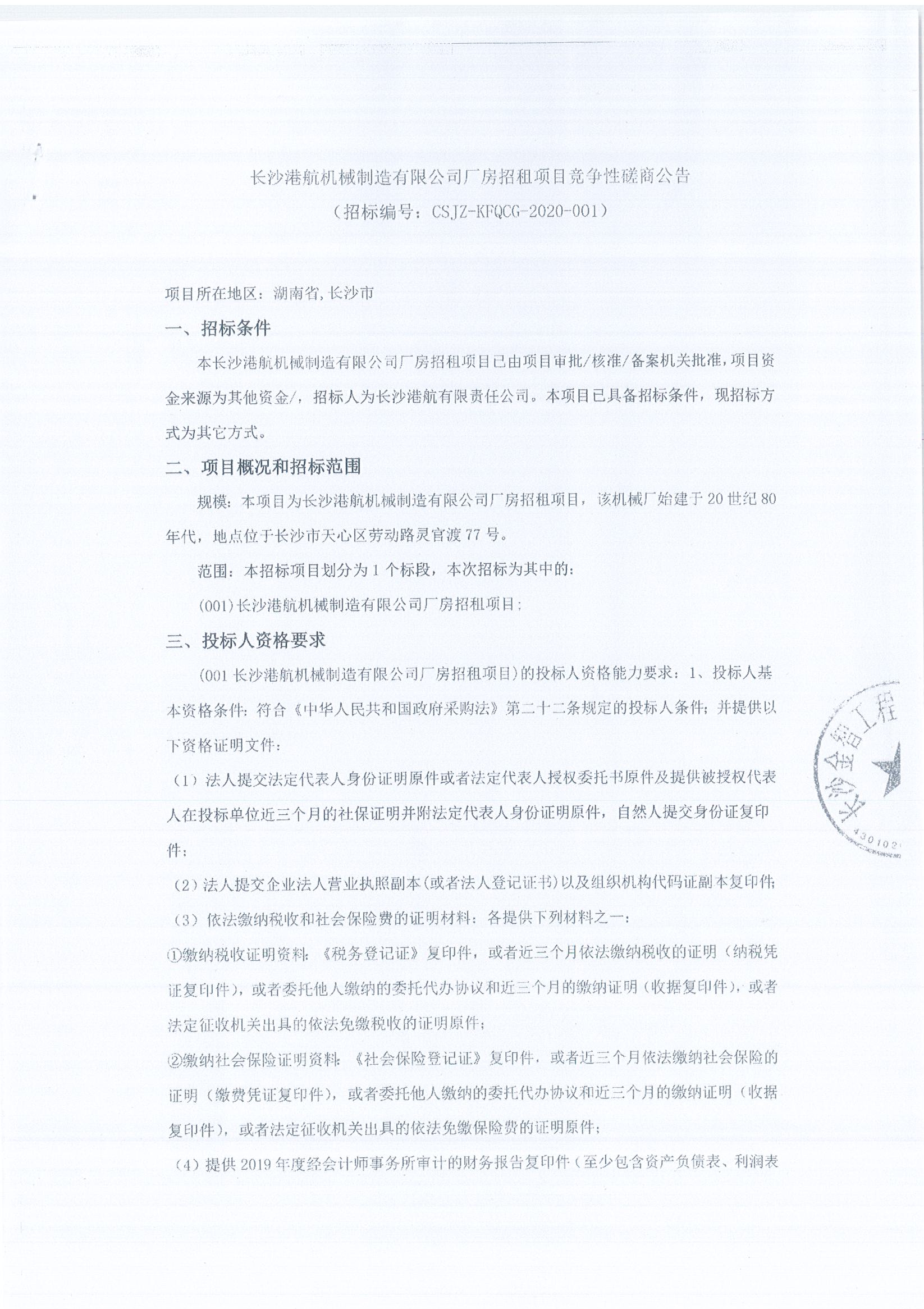 長(zhǎng)沙港航機(jī)械制造有限公司廠房招租項(xiàng)目競(jìng)爭(zhēng)性磋商公告