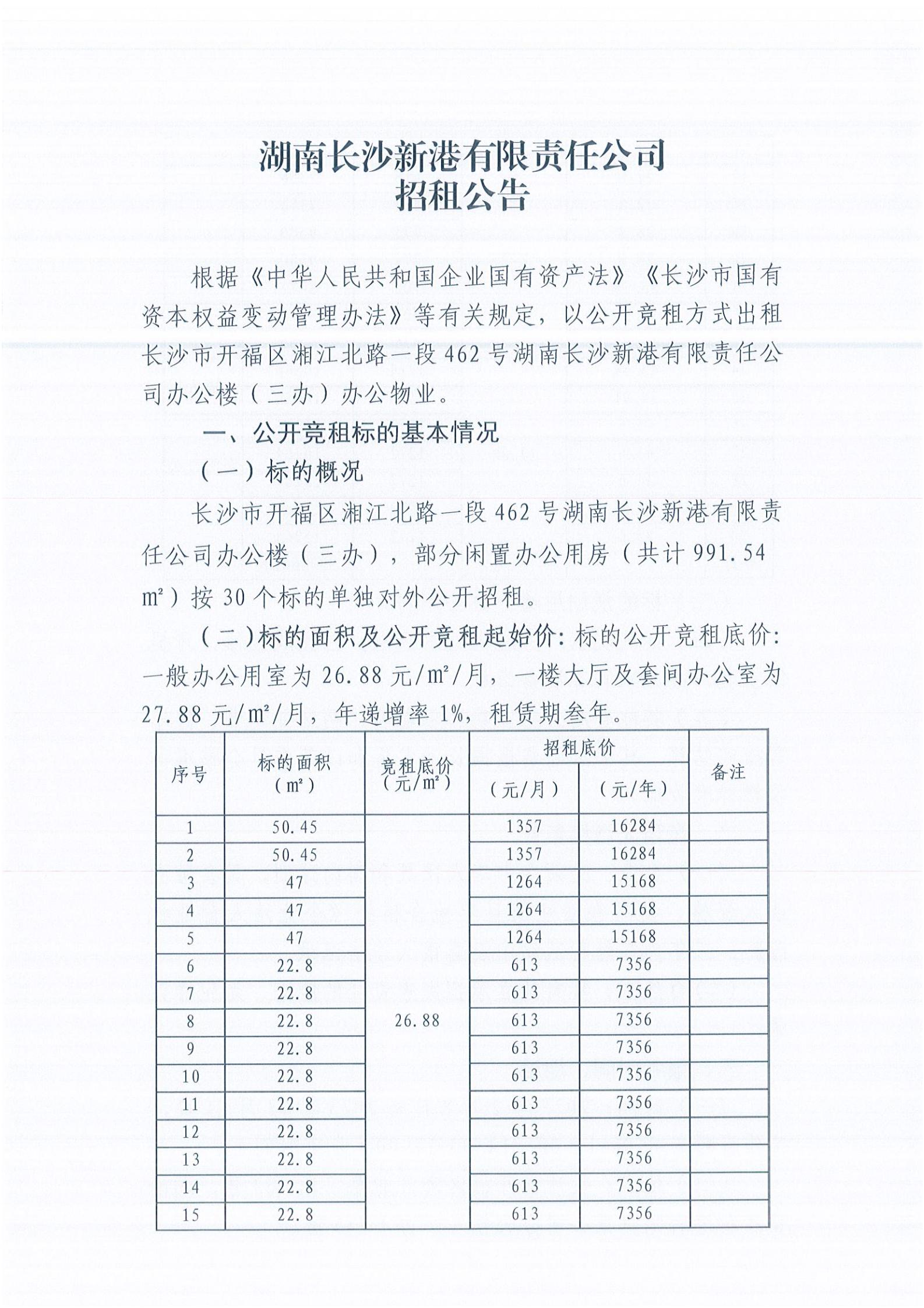 湖南長(zhǎng)沙新港有限責(zé)任公司招租公告