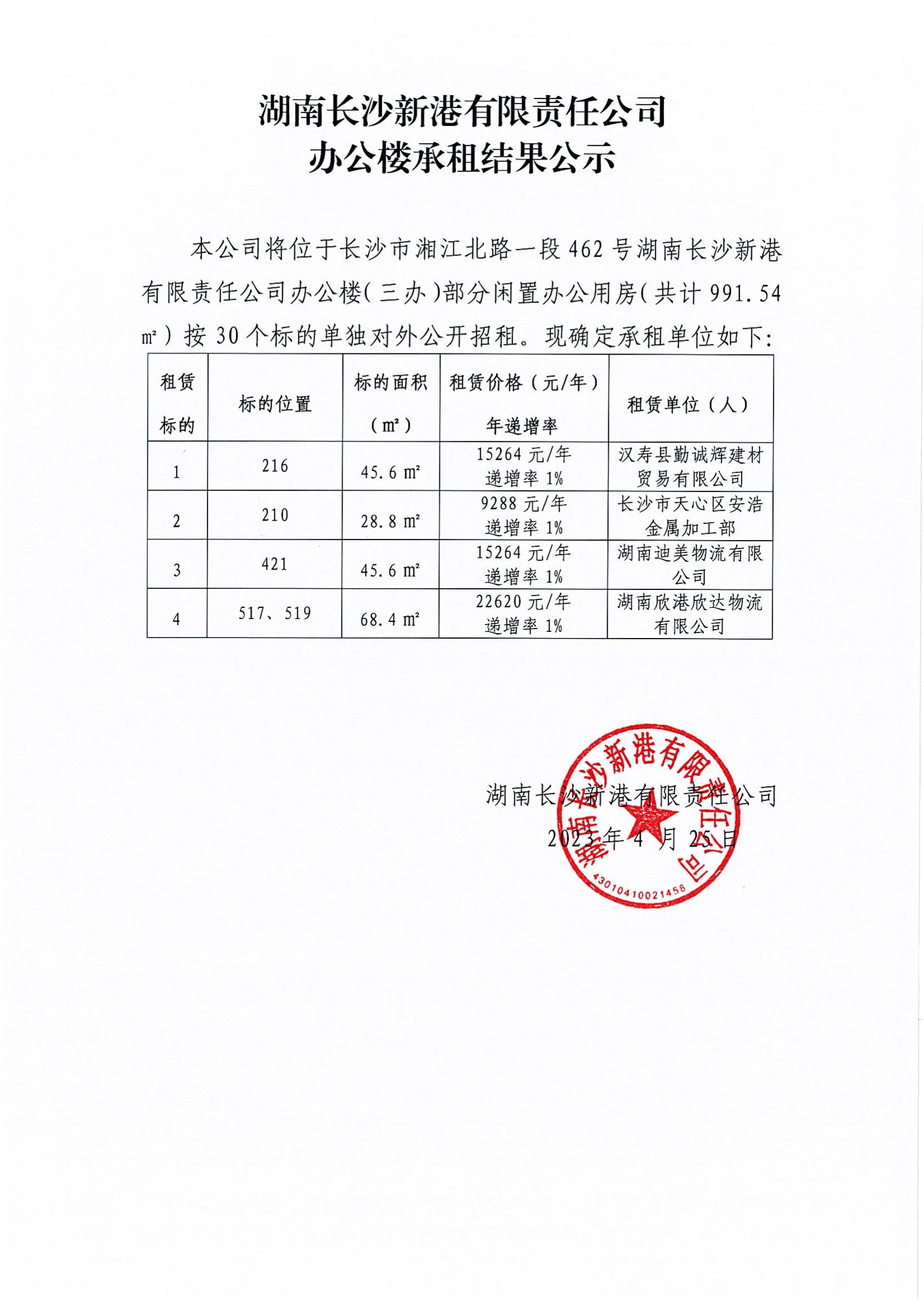 辦公樓承租結(jié)果公示