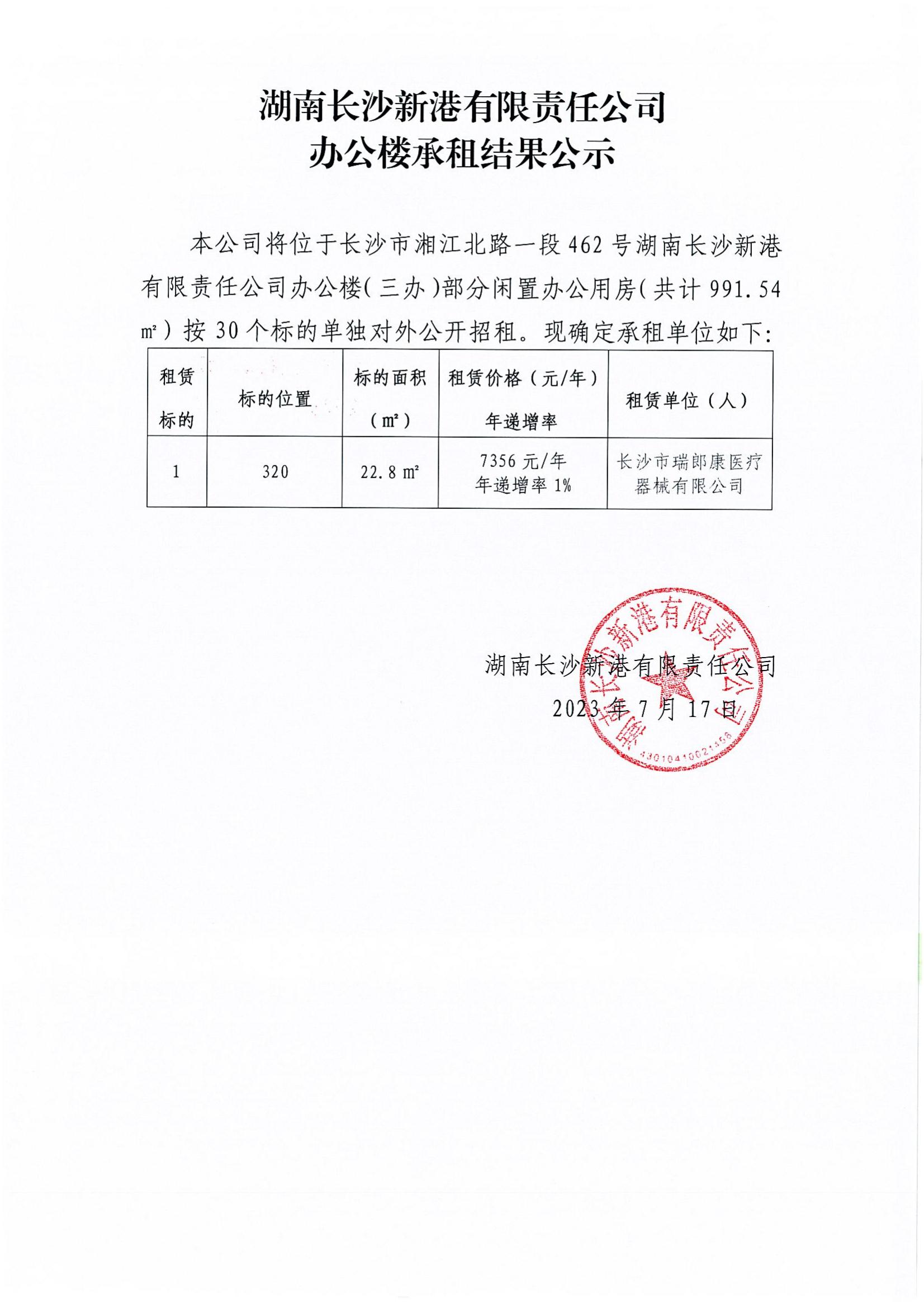 湖南長沙新港有限責任公司辦公樓承租結(jié)果公示(320)
