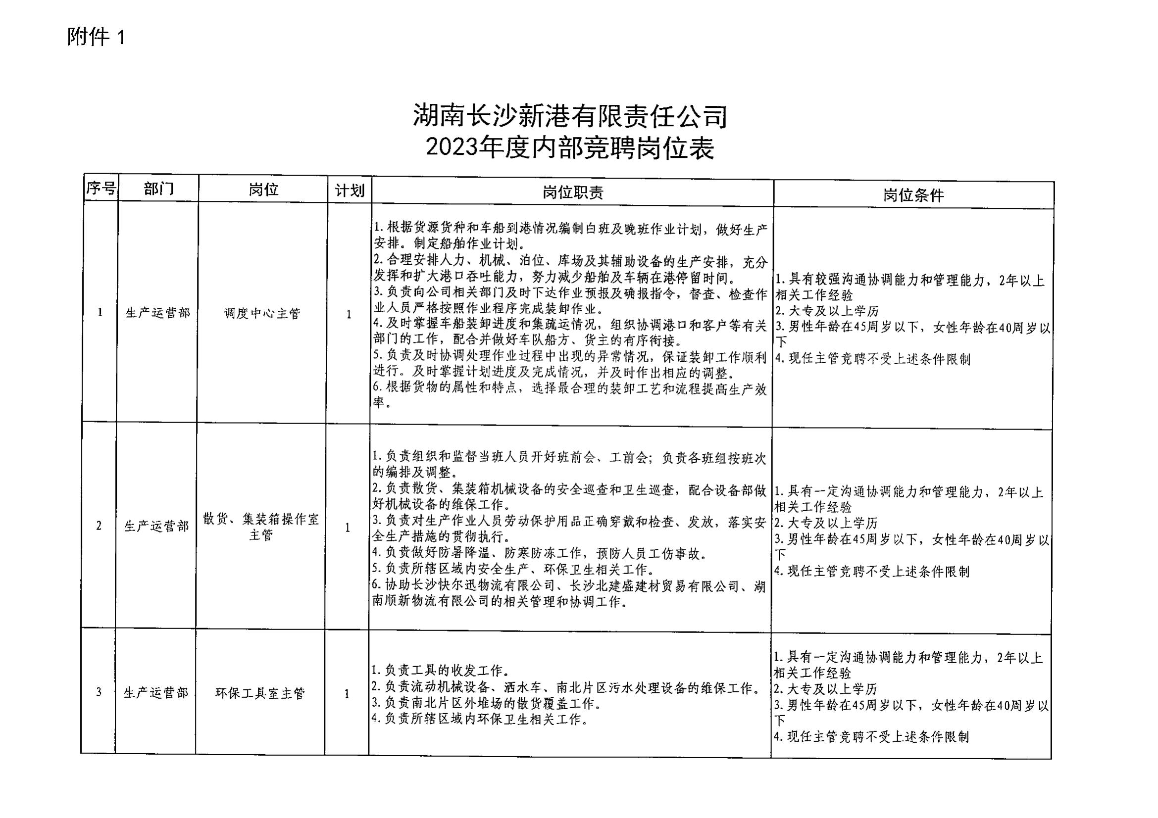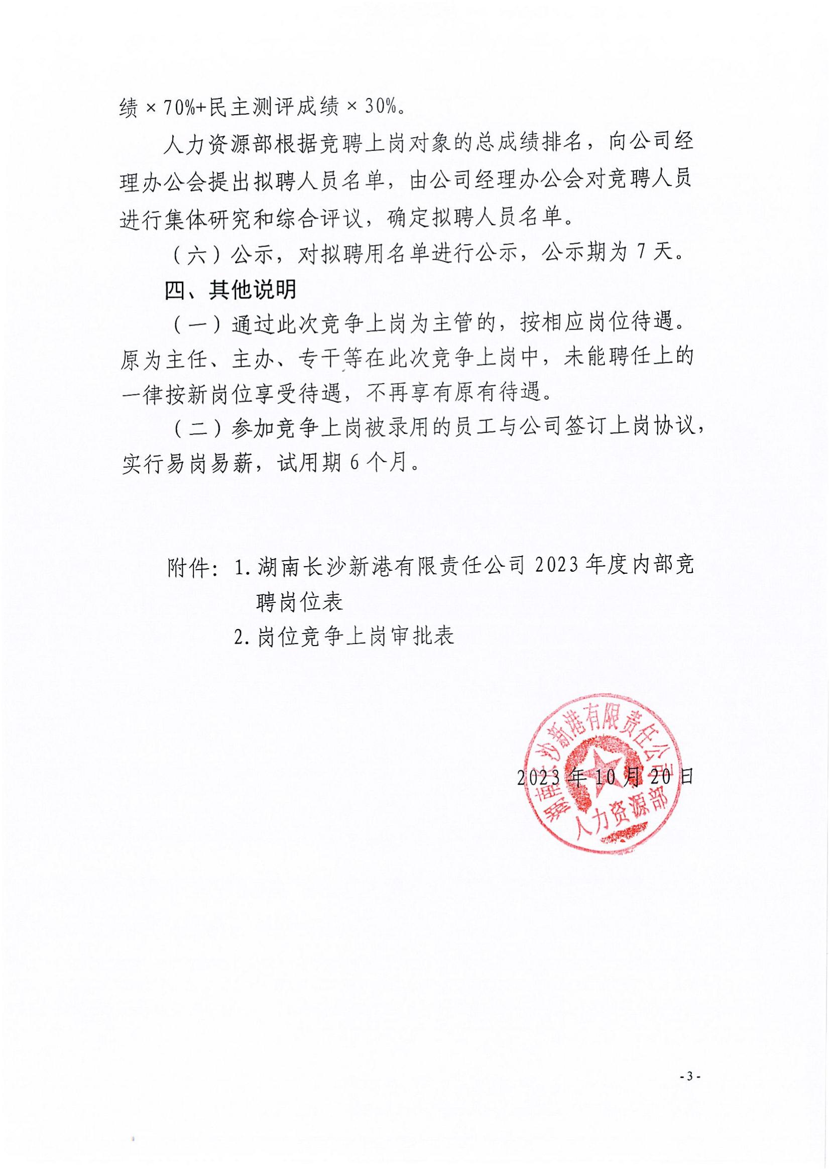 新港公司2023年度內(nèi)部競(jìng)聘公告