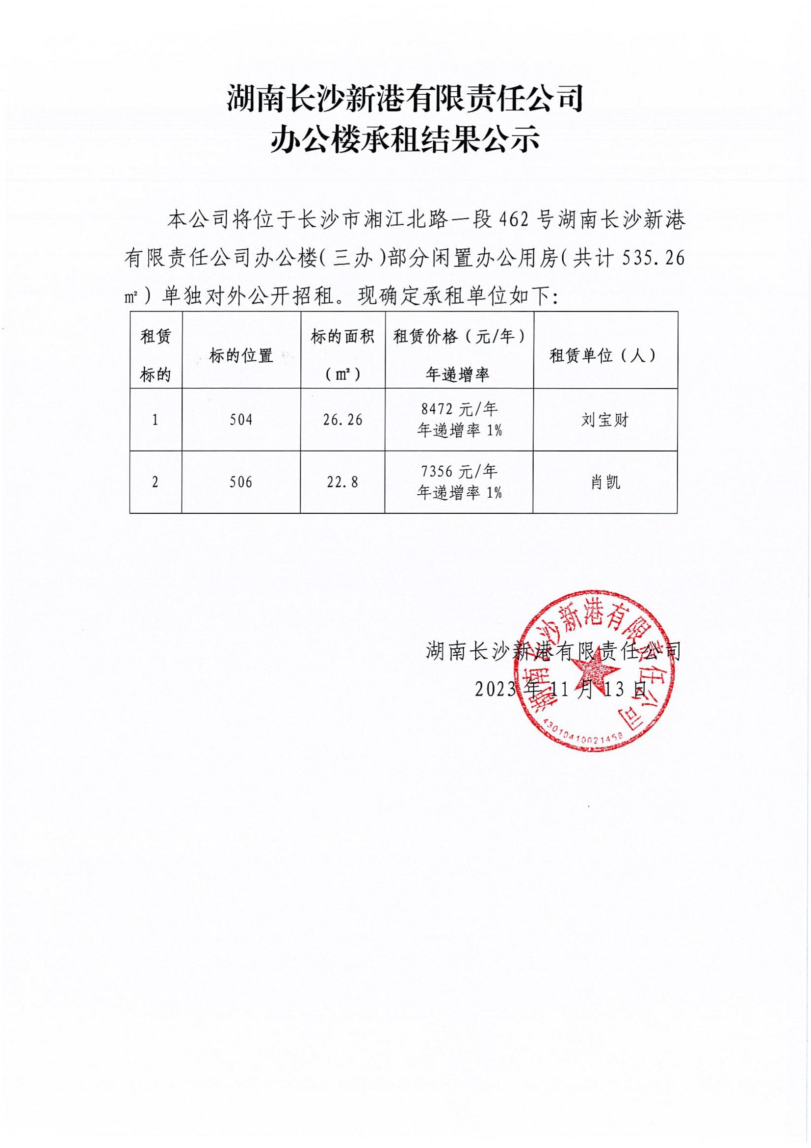 湖南長沙新港有限責(zé)任公司辦公樓承租結(jié)果公示