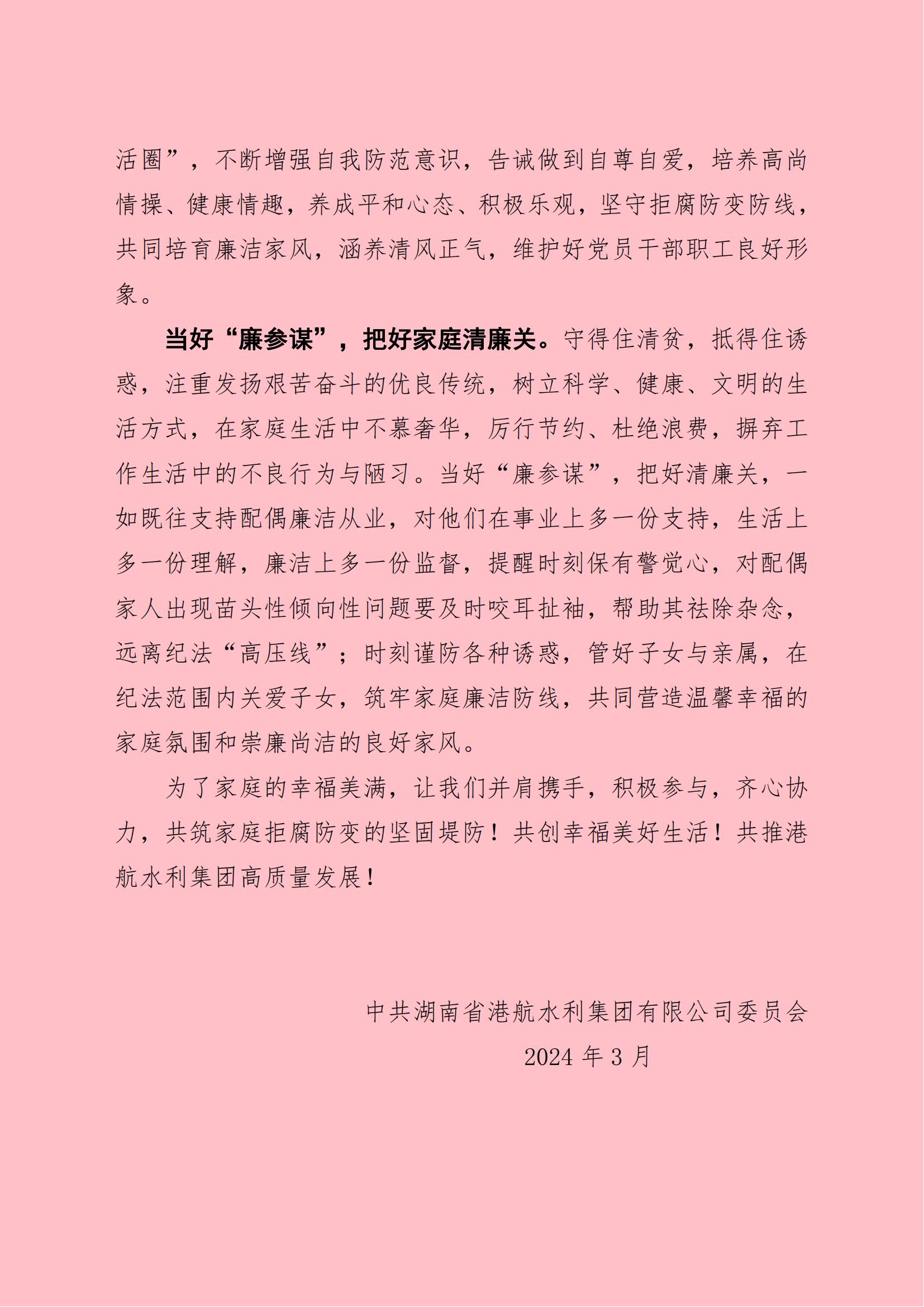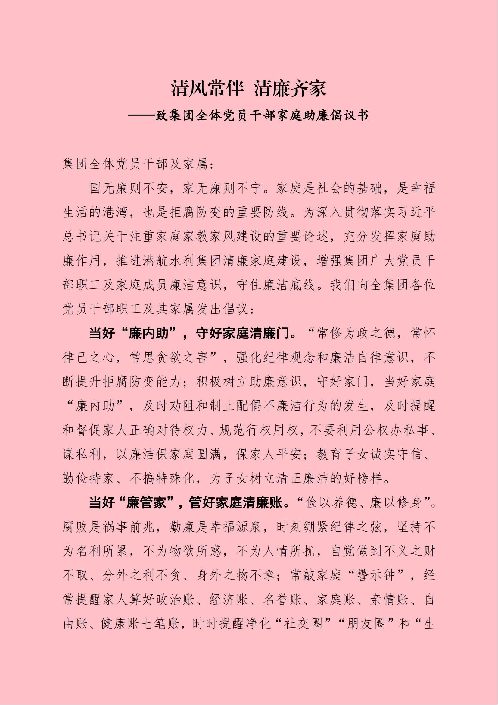 清風(fēng)常伴 清廉齊家—致集團全體黨員干部家庭助廉倡議書