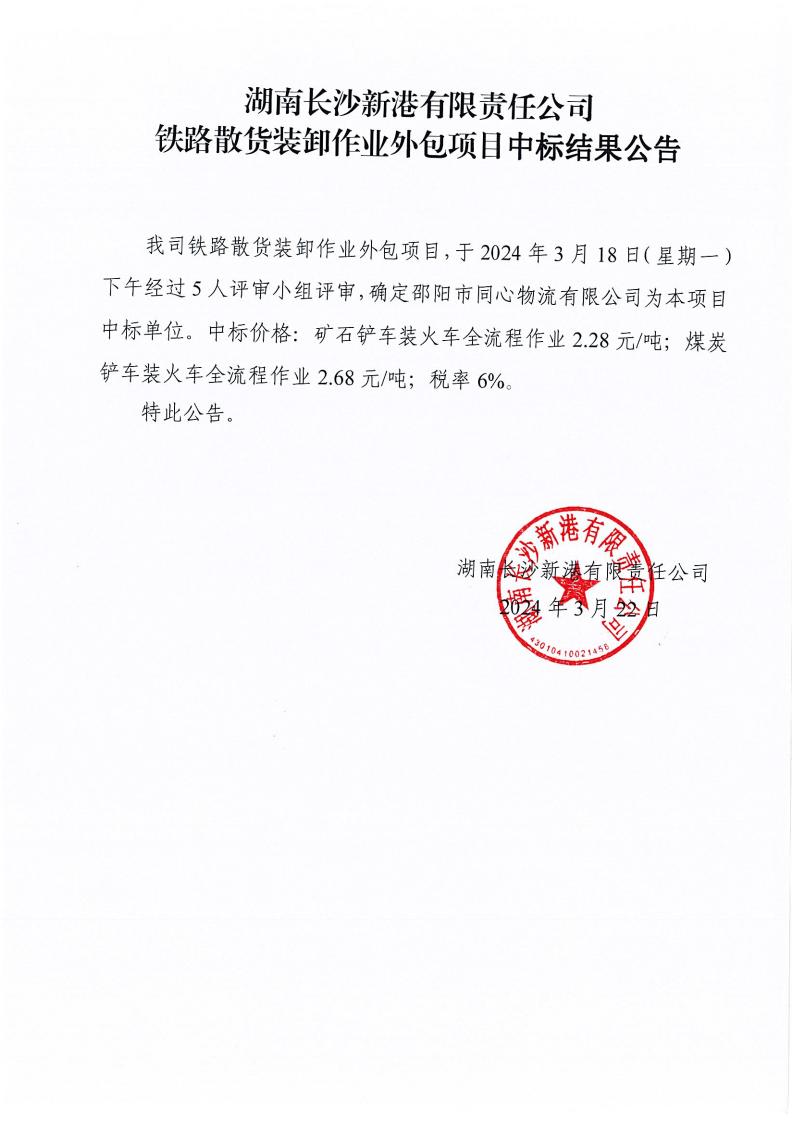鐵路散貨裝卸作業(yè)外包項目中標結(jié)果公告