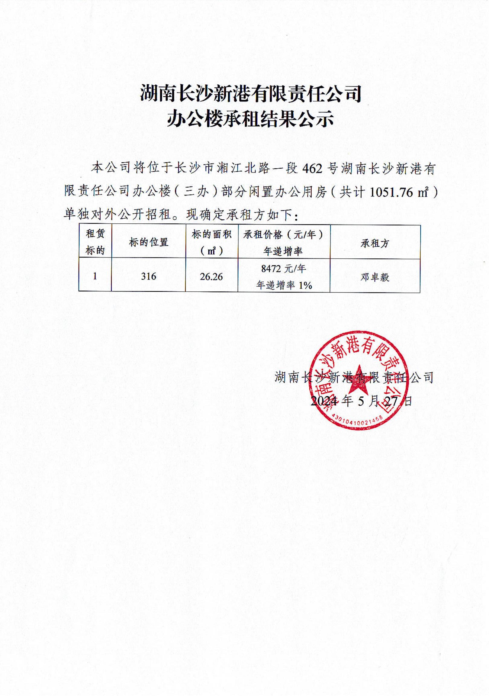 湖南長沙新港有限責(zé)任公司辦公樓承租結(jié)果公示